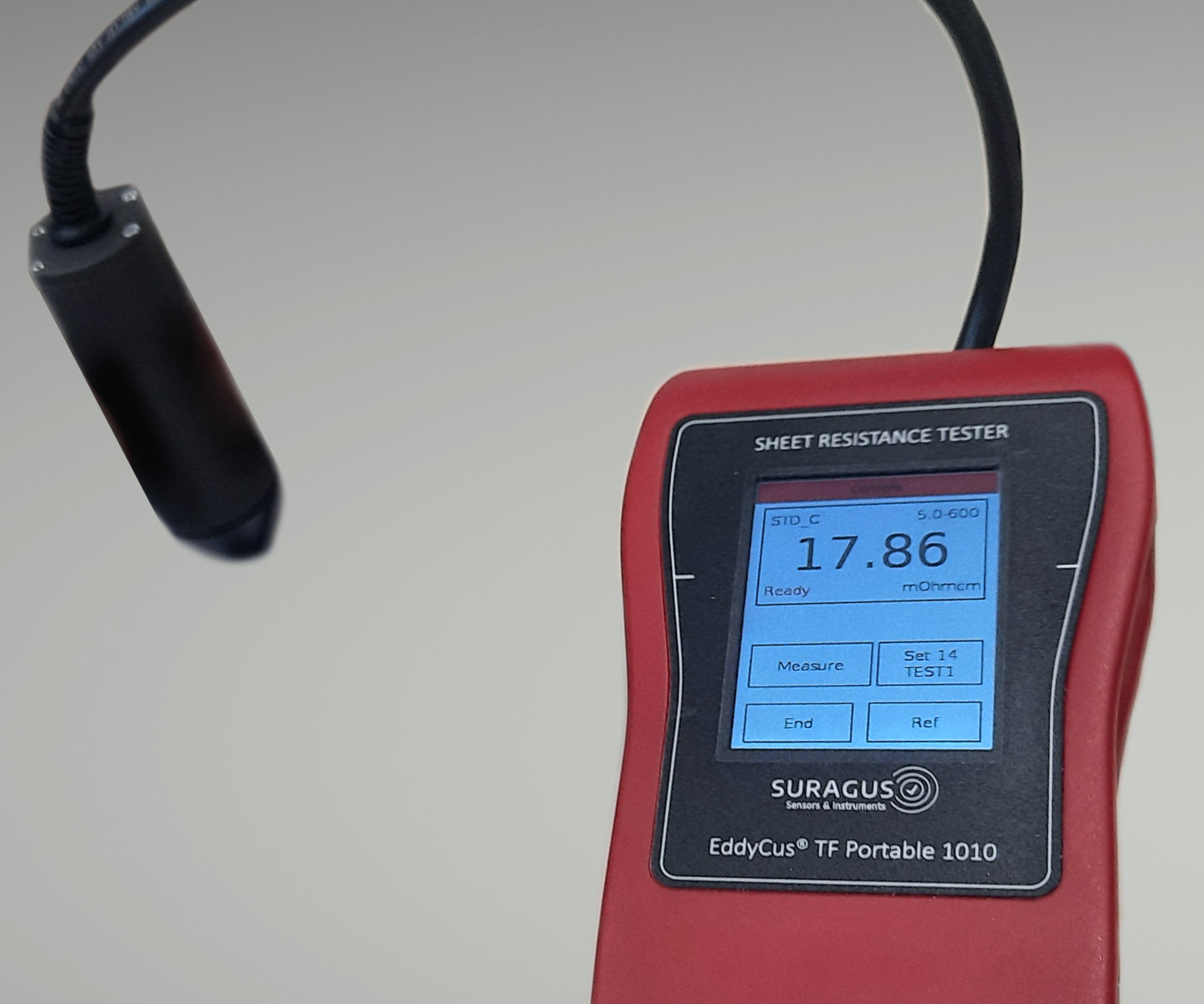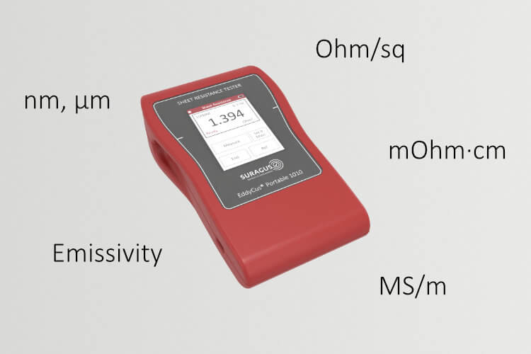 The EddyCus® portable PS is capable of measuring multiple parameters. Sheet resistance correlates with metal layer thickness, emissivity, and resistivity. As long as the material properties are well known, all of these parameters can be measured with high precision.