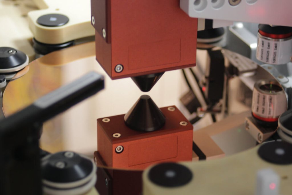 During the development of the device, emphasis was placed on reducing contacts of the system with the wafer to a minimum in order not to influence the integrity of the wafer. Therefore, the device works almost completely non-contact. The top and bottom of the wafer substrate or the coating are not touched. Contact is only made selectively and with little force on the side surfaces of the wafer. Please have a look at our video of the EddyCus® ResMapper to understand the handling process.