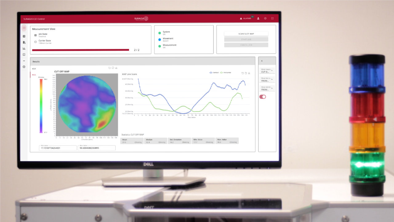 The fully automated wafer imaging tool with automated wafer handling system EddyCus® ResMapper is able to determine the