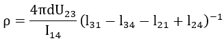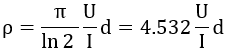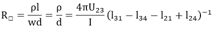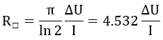 If adjacent measuring probes each have the same distance, the sheet resistance R□ is obtained from the measured voltage U and current I with: