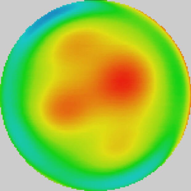 This eddy current representation is based on 22,000 measurement points and has not been artificially smoothed through extrapolation. It has a far higher level of detail than a map derived from fewer than 200 measurement points.