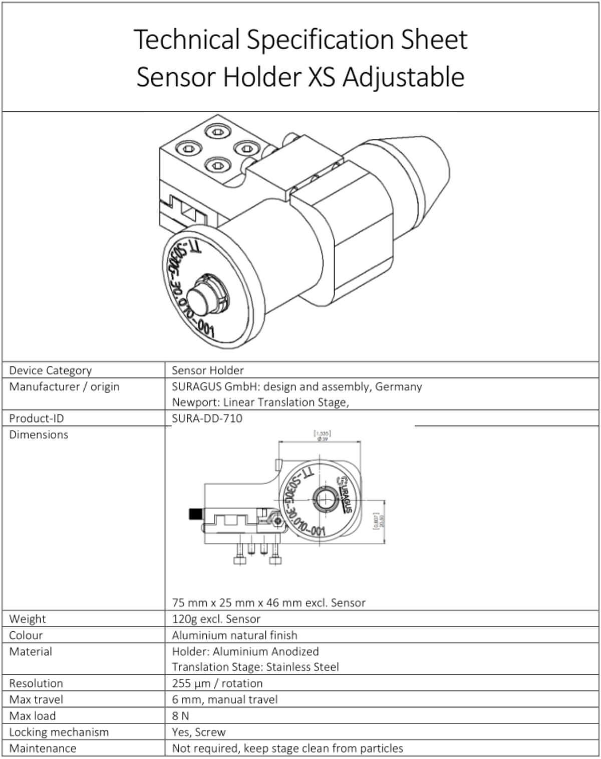- Precisely adjustable over a range of 6 mm